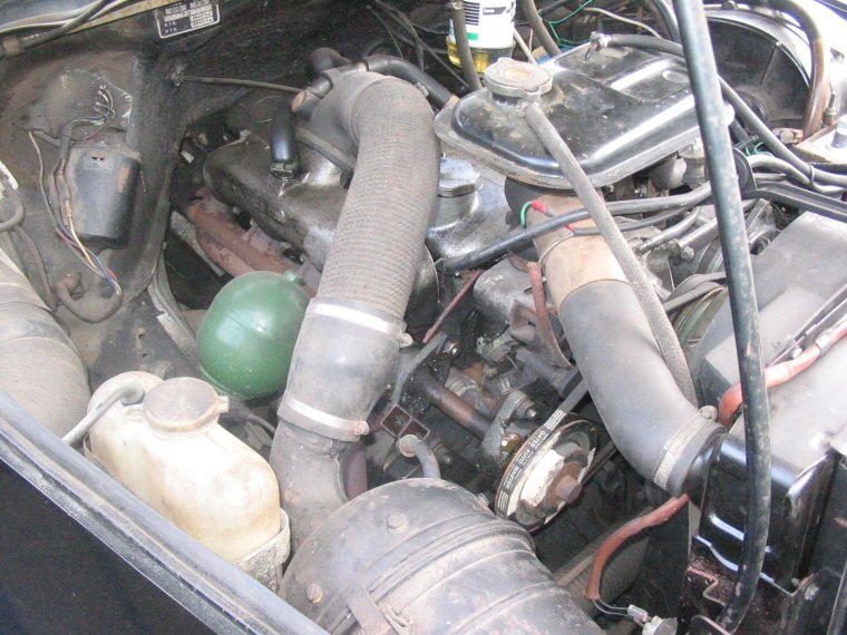 | Right side of the engine with the drive shaft for the pulley coming from the rear of the engine. | |