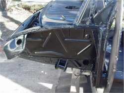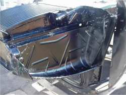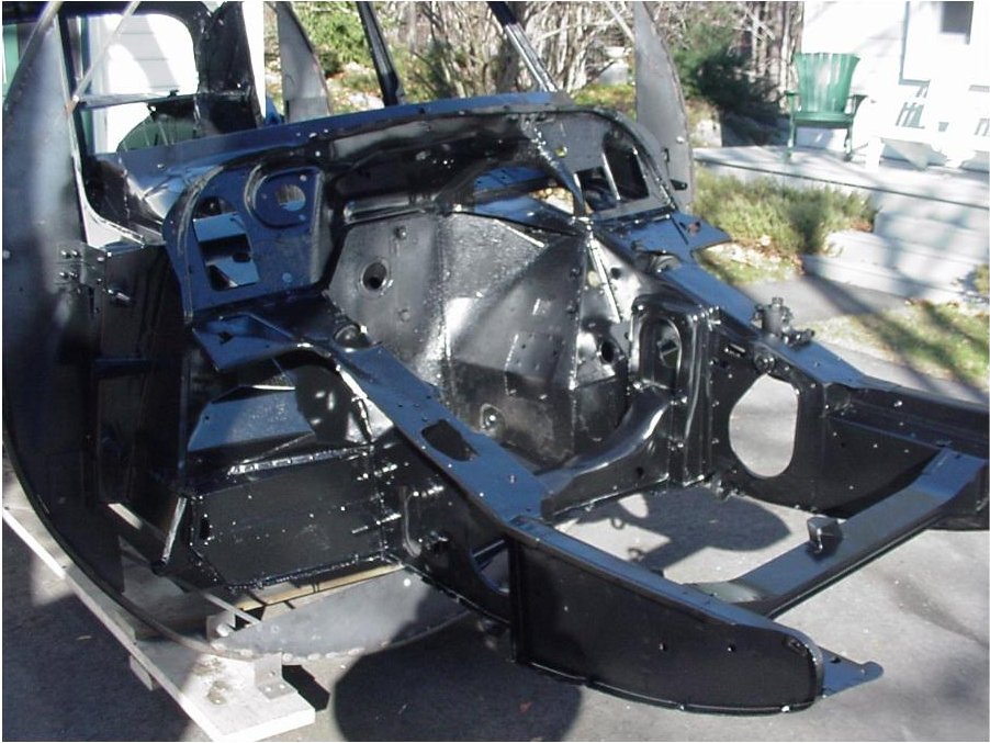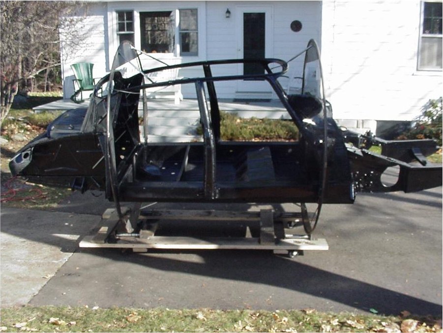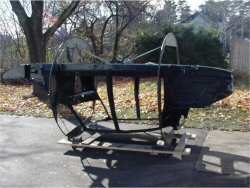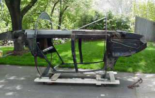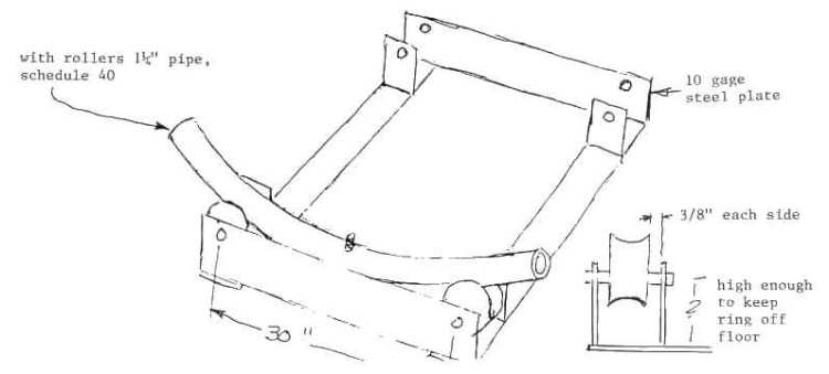 Wouldn't it be comfortable to be able to work on the bottom side of a DS/ID chassis without laying under it ? Here is the solution, mount the chassis in a rotating frame, also called "rotisserie" and restauration work will become much more convenient ! This construction was suggested by Rod Burwell, with an article and some drawings (see below), in Citroen Quarterly years ago. The photo's show Richard Sweeney's (from Maine, USA) version of this highly practical tool. |