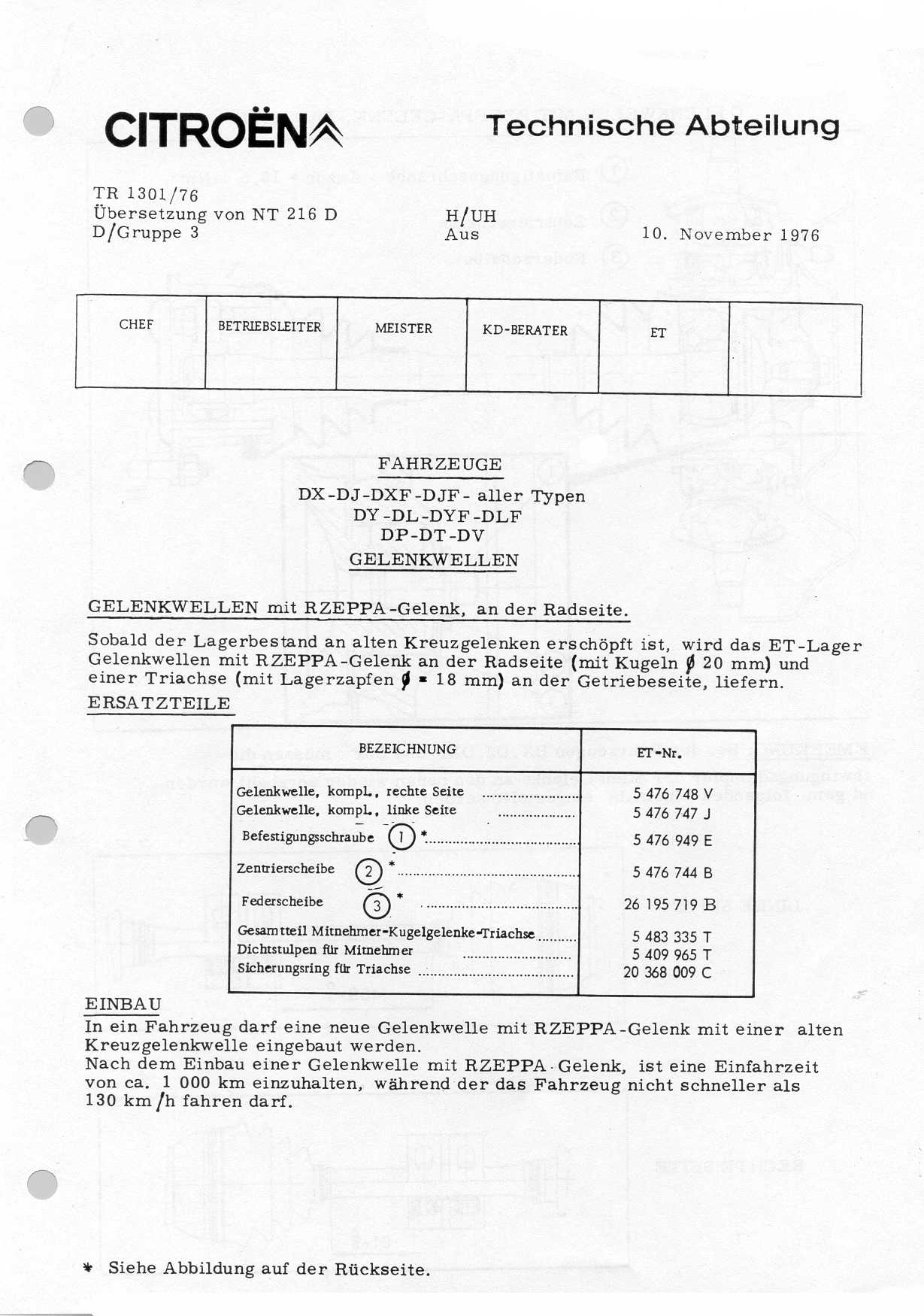 According to a Citroen Technical Bulletin note from november 1976 (!) the supply of the original drive shafts with a double Hookes joint at the wheel side was soon to be stopped. The replacement driveshafts are