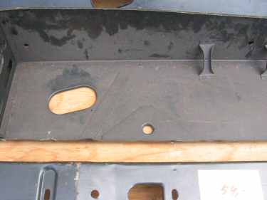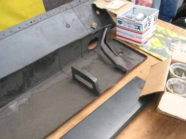 Fig. 5 Front reinforcement, a bit more damaged (bended). The oval shaped whole is where the heater tube (to rear footwell) enters the sill (in a complete car this is close to the height lever) |