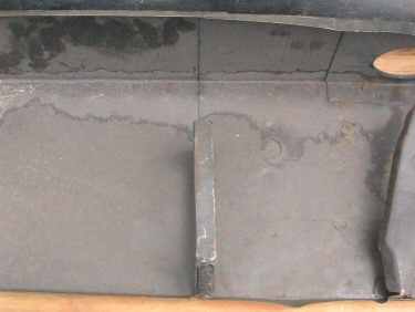 Fig. 2 Here the right sill part is turned around (with permission of the seller!) and now shows the side of the part that faces outside on the car. | |