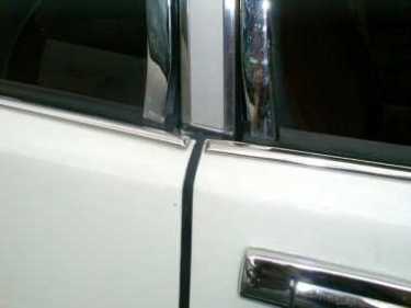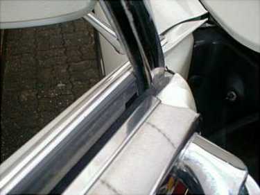 | B-pillar with front and rear window frame. | Window frame mounting on front door. |