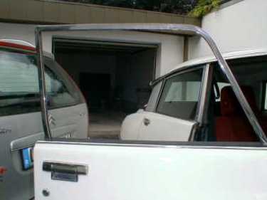 | Originally DS's do not have door window frames, but this semi-automatic 1974 DS23 Pallas does. It has been equipped with window frames on both front and rear doors as well as with electrically operated front windows. Unfortunatly the creator of the chromed window frames is not know. This originally french car is owned by Holger Stein in Germany. |