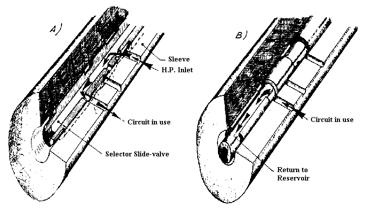 A) : When the slide-valve is moved, a port is aligned in the latter with a