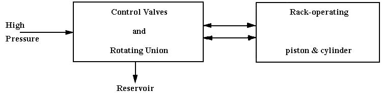 A residual pressure is maintained on either side of the piston when the steering is at rest. This pressure is maintained by the pressure-distributor valve assembly and its value is a function of the position of the pressure-control slide-valves in their sleeves. (The Crossover pressures).