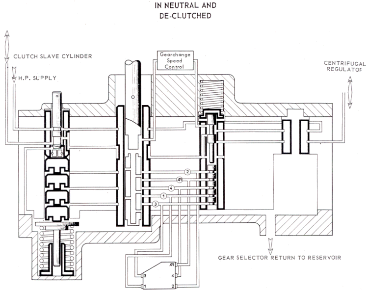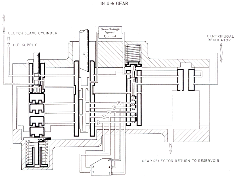 | General Details | Circuit Layout | Hydraulic Gear Selector | The Centrifugal Regulator | Clutch Lock | Clutch Reengagement Control | Gearchange Speed Regulation | I - GENERAL DETAILS